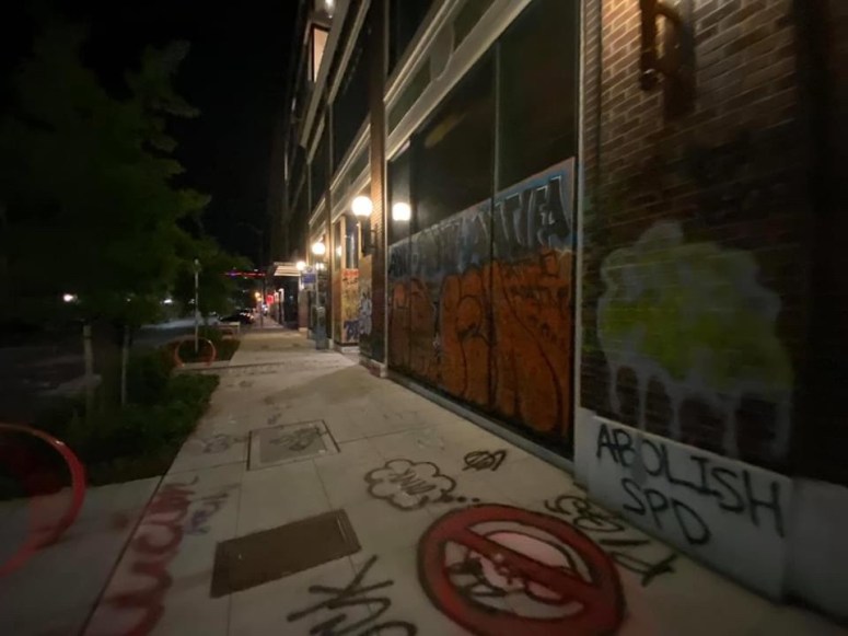 On the way back from the airport, we decided that we wanted to go into The CHOP at night. We had David as a guide who had been going in for eight to ten hours a day for over a week. As we parked our white 15 passenger van, we did not realize that we had literally parked in what had used to be completely controlled by CHOP. The barricades had recently been moved back to consolidate their stronghold.